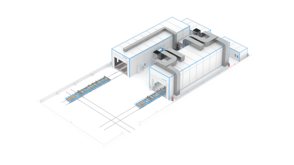 Окрасочно-сушильная камера SPK-SCB-23.7.6 предназначена для подготовки изделий к покраске (протирка, обезжиривание растворителями), нанесения на изделия лакокрасочных и защитных покрытий (жидкие ЛКМ) и сушки при повышенной температуре . В камере обеспечивается равномерный поток очищенного, при необходимости подогретого воздуха. Направление потока воздуха — сверху вниз камеры. Камера имеет сухой способ фильтрации воздуха от остатков краски. Это обеспечивает наилучшее нанесение лакокрасочного материала на подготовленное изделие и не требует реализации дополнительных очистных сооружений.